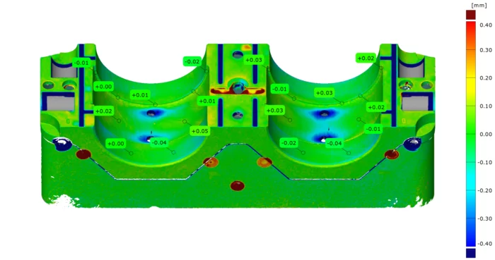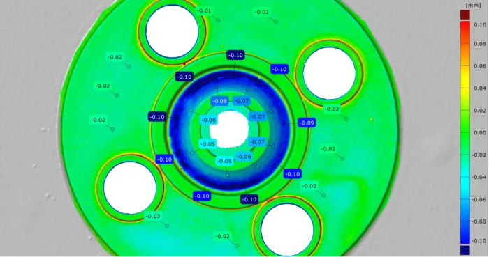 - Mapowanie kolorystyczne odchyleń w geometrii.